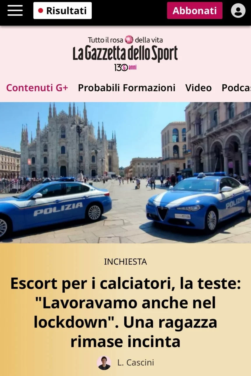 Phone leaks published by the Italian newspaper revealed that the services of this network extended to include stars from outside the world of football, with only a Formula 1 driver being implicated in using the suspicious organization’s services.
