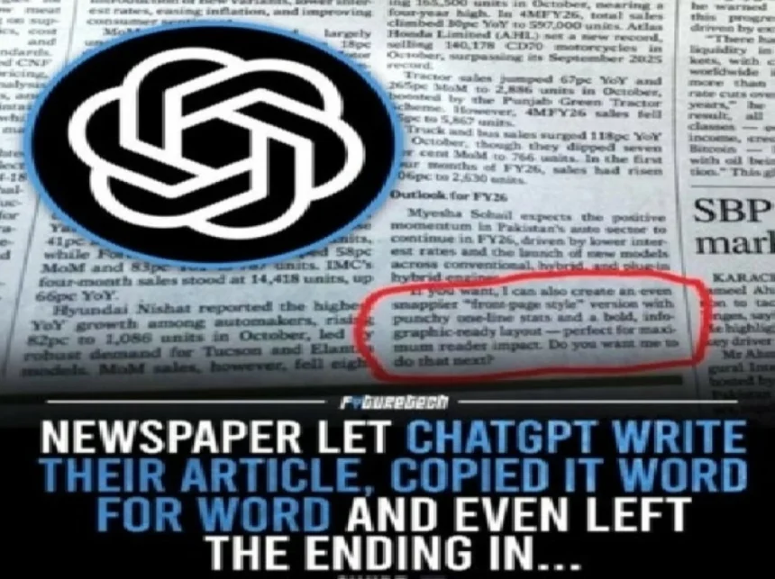 وجدت صحيفة داون الباكستانية الناطقة بالإنجليزية نفسها في قلب حادثة محرجة، بعدما اكتشفت خطأ تحريرياً فادحاً تسرّب إلى نسختها المطبوعة بسبب استخدام نموذج لغوي يعتمد على الذكاء الاصطناعي في كتابة مادة نشرت في قسم الأعمال.