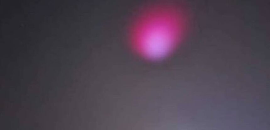 شهدت سماء شمال غرب المملكة مساء أمس، ظاهرة جوية استثنائية، حيث ظهرت بقعة دائرية وردية لامعة بعد غروب الشمس في مشهد نادر وغير مألوف.