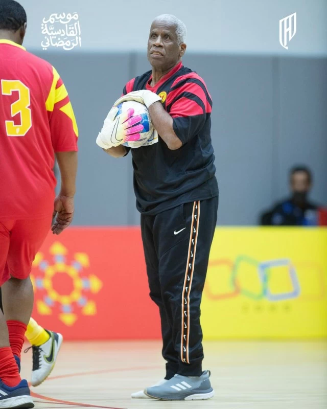 The Al-Qadsiah Club has brought back the veteran Bahraini goalkeeper Hamoud Sultan to his first love, football, and wearing gloves to save shots, as he participated in the charity match dedicated to the late star Ali Fail. This was part of the third edition of the Al-Qadsiah Ramadan season, in a gesture of loyalty that reflects the club’s and the sports community’s appreciation for his career and contributions on the field. The match brought together a constellation of former Al-Qadsiah stars and several players from clubs in the Kingdom and the Gulf countries, in a Ramadan atmosphere characterized by love and loyalty, led by former international star Yasser Al-Qahtani alongside a group of names that left their mark on the fields, including Mohammed Al-Farhan, Abdulrahman Bourshaid, Bandar Al-Khalidi, Ghazi Asiri, Aref Bourshaid, Fahd Al-Shami, Habib Al-Safwani, Mohammed Al-Dal’an, Saleh Al-Qanbar, Hussein Al-Sadiq, Yusuf Al-Jami’a, Khamees Eid, Hamoud Sultan, Zaid Al-Muallad, Fawzi Al-Shahri, Saeed Al-Wadani, Khalid Al-Haranda, Ahmad Al-Ruwai’i, and Abdu Hakami.