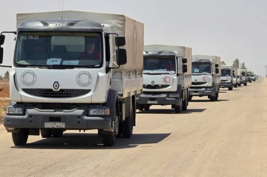 وأفادت بأن القافلة مؤلفة من 30 شاحنة محملة بالمواد الغذائية والإغاثية، وستدخل السويداء عبر ممر بصرى الشام الإنساني بإشراف الهلال الأحمر السوري والأمم المتحدة.