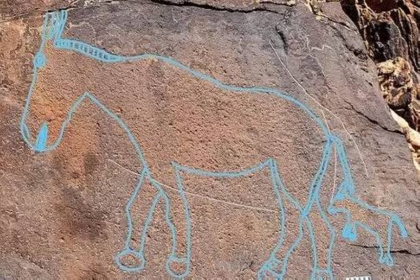 احتفت مجلة «نيتشر» الأمريكية، باكتشاف رسومات بالحجم الطبيعي على صخور الحجر الرملي في صحراء النفود السعودية، يعود عمرها إلى نحو 12 ألف سنة.
