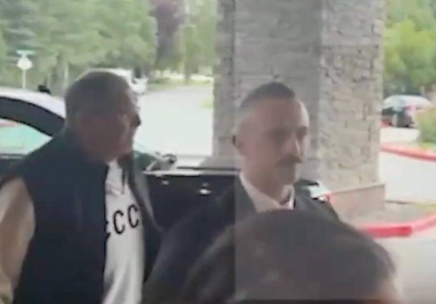 وظهر لافروف وهو يخرج من سيارة سوداء أمام فندق في أنكوراج، حيث كان يرتدي سترة سوداء فوق القميص، لكن الأحرف «CC» كانت واضحة، ما أثار تفاعلاً فورياً على وسائل التواصل الاجتماعي والصحافة الدولية.