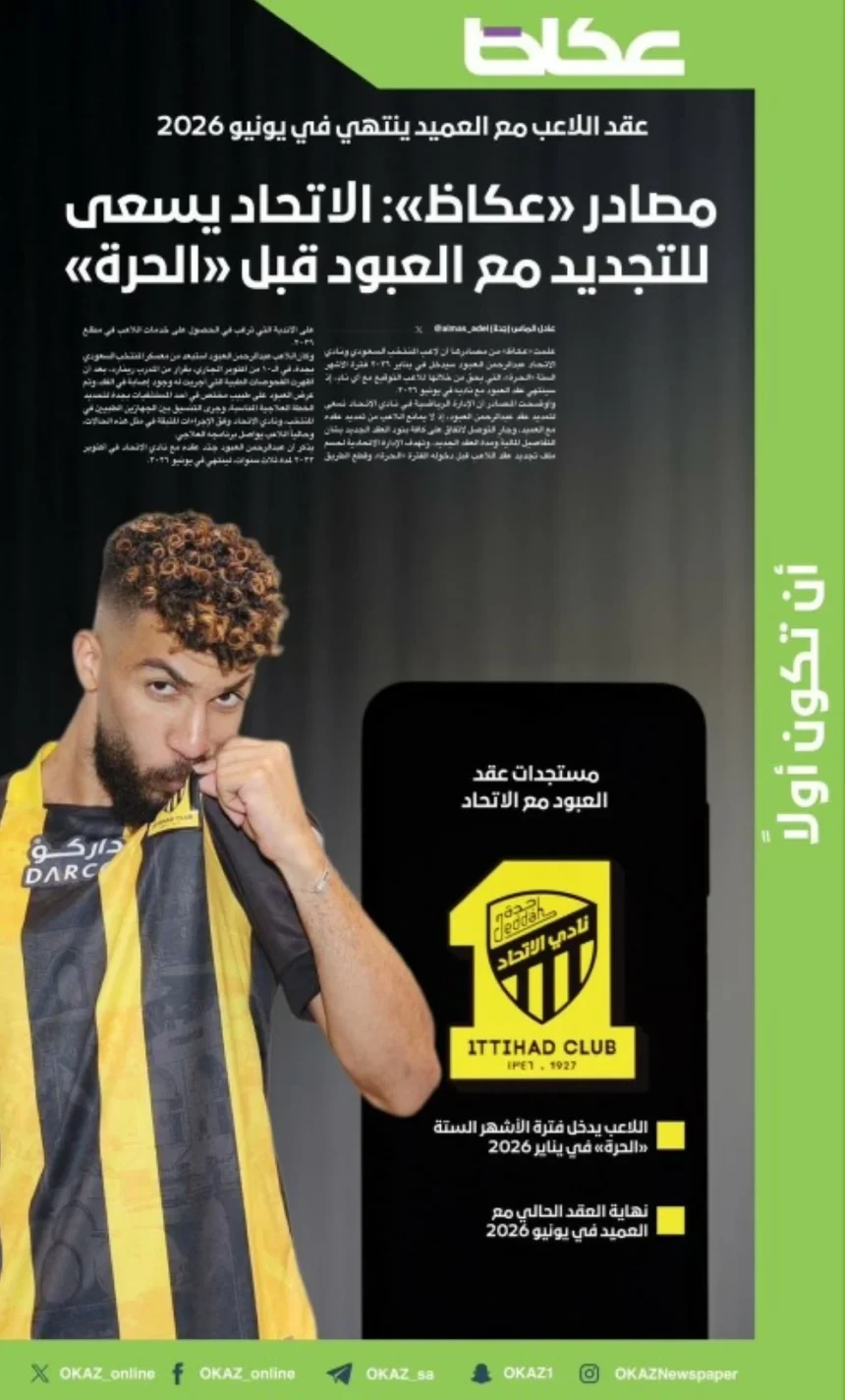 Reading: كما تميزت «عكاظ»: الاتحاد يمدد عقد العبود حتى 2027 – أخبار السعودية – ن والقلم