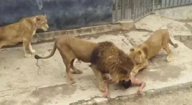 أظهرت لقطات الحادث لحظة رعب الطفلة، عندما دفع الأسد مخلبه عبر فجوة في القفص، فأمسك بملابسها وسحب ساقها نحوه، وسط صرخات مروعة من الفتاة.