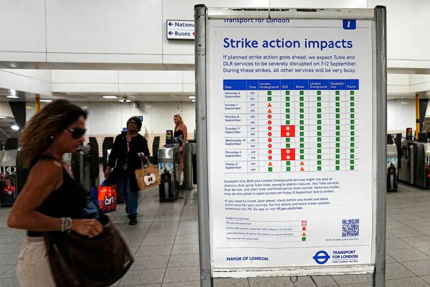 حذرت هيئة النقل في لندن (Transport for London) من أن خدمات المترو ستكون «قليلة أو معدومة» من الإثنين حتى الخميس، بعد أن شهدت أمس (الأحد) أول أيام الإضراب المحدودة. ويستخدم نحو خمسة ملايين راكب المترو يومياً، الذي يضم 272 محطة و11 خطاً في أنحاء لندن وضواحيها.