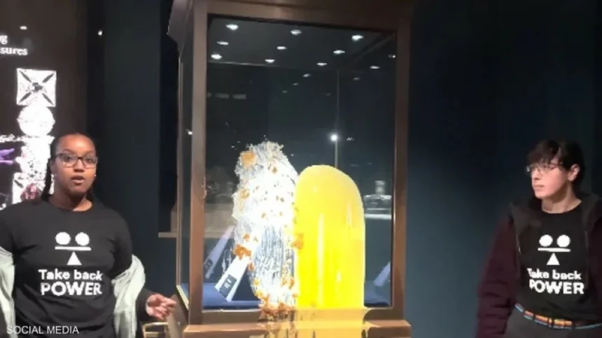 Reading: متظاهرون يلطخون مجوهرات التاج البريطاني بالحلوى – أخبار السعودية – ن والقلم