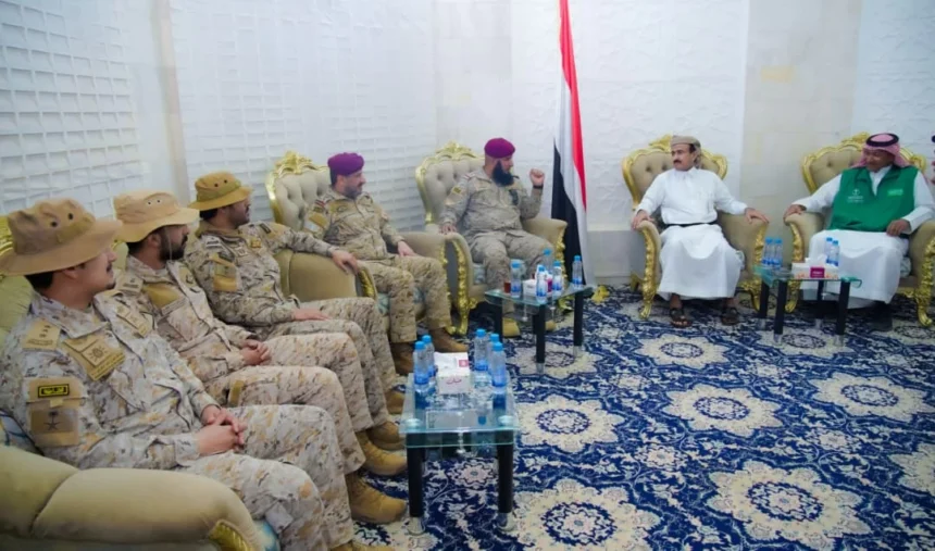 The meeting discussed enhancing mechanisms for joint coordination between the local authority, the coalition forces, and the Saudi developmental and relief arms.