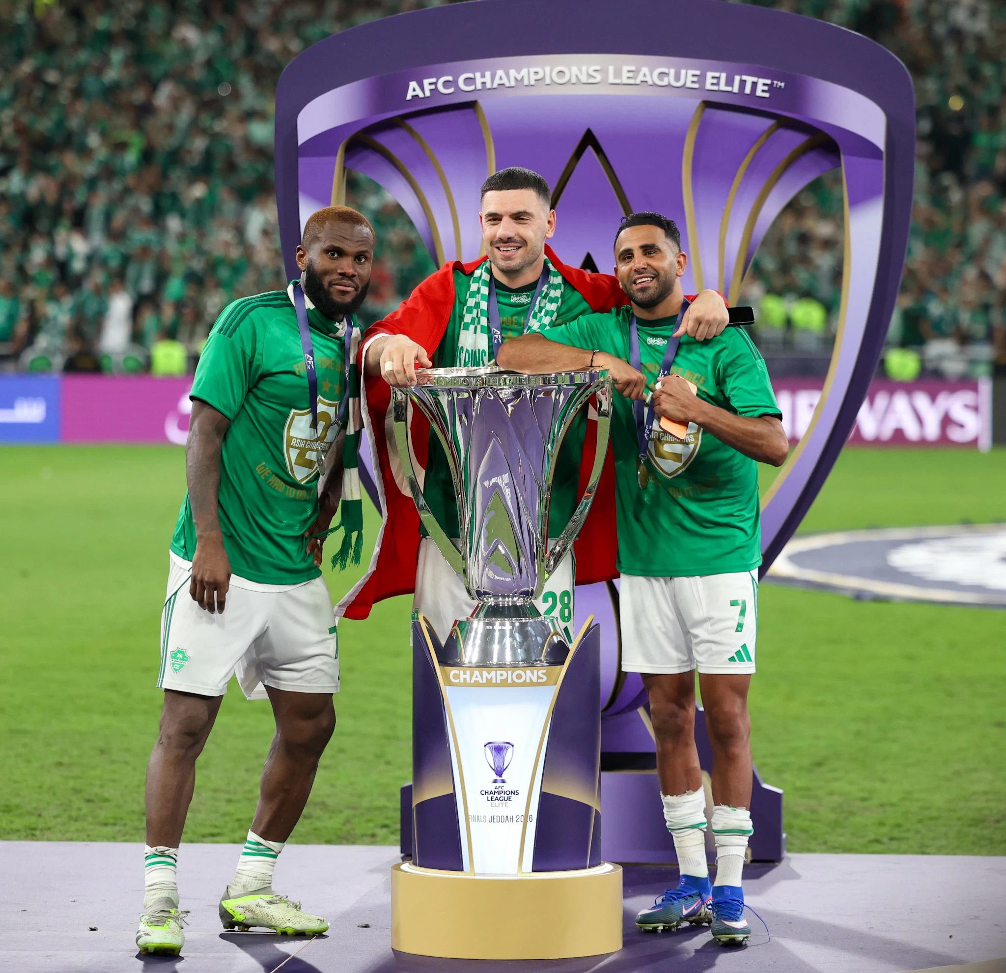 جلب النجم الأهلاوي الجزائري رياض محرز الألقاب الآسيوية برفقة الأندية التي شارك فيها ولعب لها، بعد أن حقق اللقب الثاني على صعيد آسيا مع فريقه الحالي الأهلي للمرة الثانية في تاريخه.وسبق لمحرز التتويج بلقب دوري أبطال أوروبا برفقة فريق مانشستر سيتي الإنجليزي للمرة الأولى في تاريخ العملاق الإنجليزي موسم 2022-2023. كما نجح في قيادة فريق ليستر سيتي في موسم 2015-2016 لحصد لقب الدوري الإنجليزي للمرة الأولى في تاريخه، إضافة إلى إعادة منتخب الجزائر لمنصات التتويج بعد غياب استمر 29 عاماً، حينما حصد لقب أمم أفريقيا 2019، وها هو جالب اللقب دوري أبطال آسيا للنخبة للمرة الثانية على التوالي.