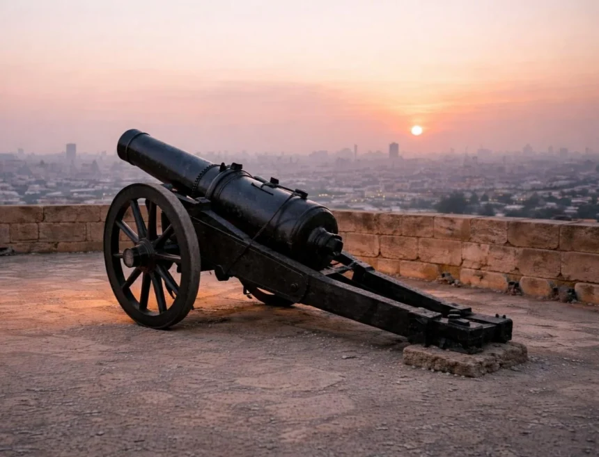 The history of the iftar cannon – according to historical accounts – dates back to the Mamluk era in Cairo, when a cannon was accidentally fired at sunset during a military drill. The residents thought it was a signal for iftar and appreciated the idea, leading it to become a daily Ramadan tradition that later spread to several Arab cities.