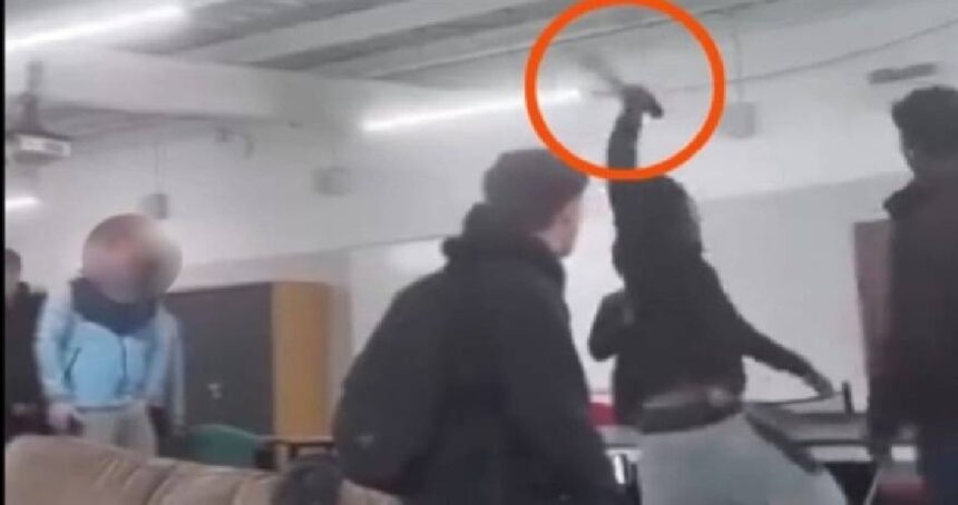 مقطع الفيديو الذي انتشر سريعاً على منصة X أظهر المراهق وهو يخرج السلاح من جيبه ثم يبدأ في التلويح به وضرب إحدى الطاولات، وسط صرخات متواصلة من زملائه الذين حاول بعضهم تهدئته دون جدوى، فيما فر آخرون خوفاً من التعرض للطعن.