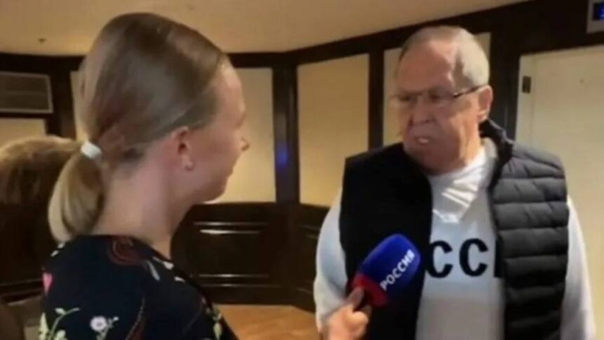 وكشف مقطع فيديو لافروف وهو يترجل من سيارة خارج مقر القمة، وبدا أنه يرتدي القميص المثير للجدل تحت سترة بلا أكمام، بينما كانت مراسلة تلفزيونية تسأله، في خطوة اعتبرتها الصحيفة «رسالة مخيفة إلى أوكرانيا وجيران روسيا المؤيدين للغرب».