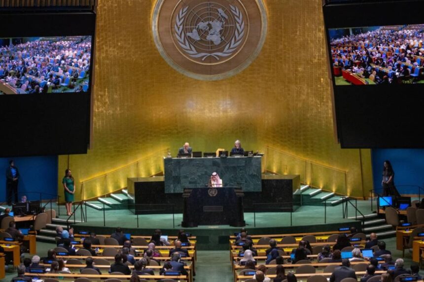 أكدت مسوّدة بيان «مؤتمر حل الدولتين» المنعقد في نيويورك برئاسة سعودية ـ فرنسية اليوم (الثلاثاء) أن حل الدولتين السبيل الوحيد لتلبية تطلعات الإسرائيليين والفلسطينيين، مشددة على أنه لا يمكن للحرب والاحتلال والنزوح تحقيق السلام.