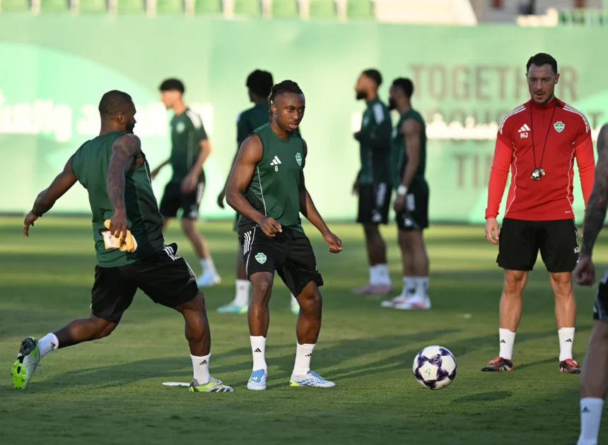 The Al Ahly training saw the participation of players Ali Majrashi, Zakaria Hawsawi, alongside the Frenchman Valentin Atangana, as part of the team’s preparations to face Qatari club Al Duhail in the Round of 16 of the AFC Champions League.