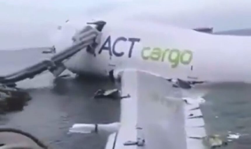 وأصدرت إدارة الطيران المدني في هونغ كونغ بيانًا جاء فيه أن طائرة شحن من طراز بوينغ 744 انحرفت عن المدرج الشمالي بعد هبوطها وتحطمت في البحر، مبينةً أن أفراد الطاقم الأربعة الذين كانوا في الطائرة نقلوا إلى المستشفى في حين لقي اثنان من الموظفين مصرعهما على المدرج بعد اصطدام الطائرة بمركبة.