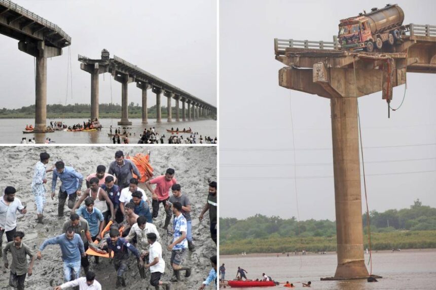 لقي 9 أشخاص على الأقل حتفهم عقب انهيار جسر في نهر في ولاية جوجارات بغرب الهند، حسبما ذكرت وكالة «بريس تراست أوف إنديا» نقلاً عن مسؤولي الشرطة.