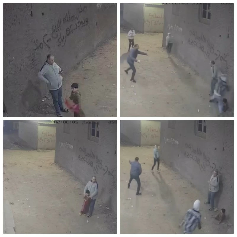 وثّق مقطع فيديو متداول على نطاق واسع لحظات الاعتداء، حيث يظهر شخصان – أحدهما يحمل بندقية خرطوش والآخر سلاحًا أبيض – يهاجمان الأب «أحمد مرسي أحمد» وابنه «محمد» في أحد شوارع القرية، وحاول الأب بيأس حماية نجله بجسده وسط صرخات الطفل الذي أصابه الرعب الشديد، قبل أن يفر المعتدون هاربين من المكان.