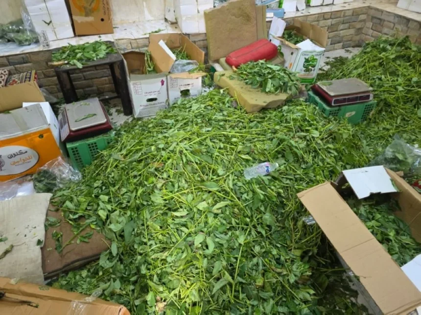 He indicated that the first site was a yard containing residential rooms, used for storing and packaging vegetable and date papers, in an environment lacking health standards, with the presence of insects and rodents. This resulted in the destruction of large quantities of vegetable papers estimated at about one ton, the confiscation of 47 cartons of dates, the seizure of 5 electronic scales and 4 packaging machines, and the immediate closure of the site by the sub-municipality.