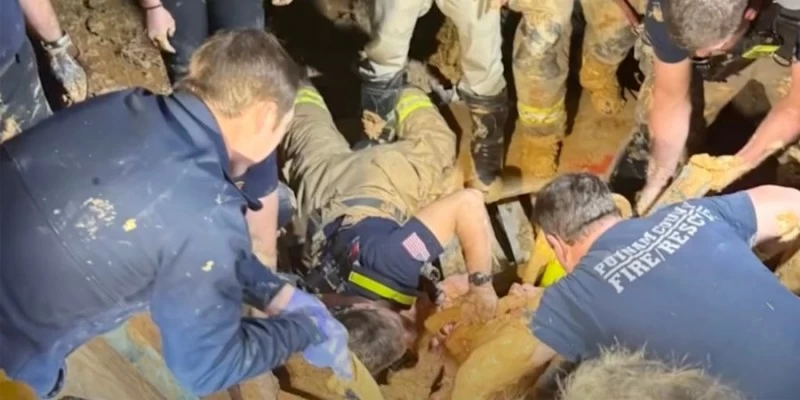 The rescuers used ropes, ladders, and shovels to gradually pull him from the thick mud, which the Melrose Fire Chief described as “similar to peanut butter.” After the rescue, Giddens was airlifted to a trauma center for urgent medical treatment.