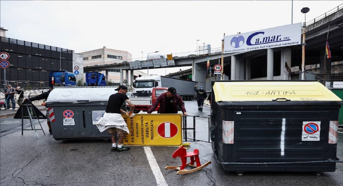 وبحسب تقارير إعلامية إيطالية أغلق عمال الموانئ الطرق المؤدية إلى ميناء جنوة في شمال إيطاليا، ضمن فعاليات احتجاجية ضد العمليات العسكرية الإسرائيلية في غزة، كما تسببت الإضرابات، التي دعت إليها نقابات عمالية عدة تضامناً مع الشعب الفلسطيني، في تعطيل خدمات النقل وإغلاق عدد من المدارس في أنحاء إيطاليا.