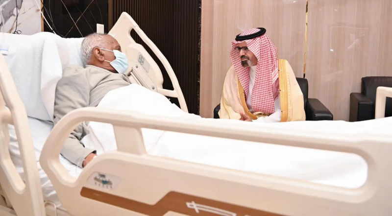 واطمأن الأمير ناصر بن محمد خلال الزيارة على حالته الصحية، داعياً الله أن يمنَّ عليه بالشفاء العاجل.