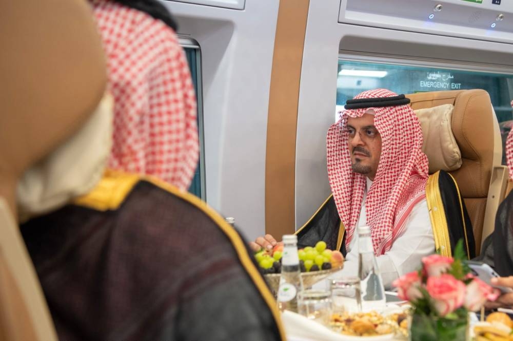 إثر ذلك انتقل بواسطة القطار إلى محطة مكة المكرمة، والتقى عدداً من العاملين واطلع على الخطط التشغيلية لموسم العمرة في شهر رمضان والبرامج التطويرية، والخدمات الحديثة التي يقدمها قطار الحرمين السريع.