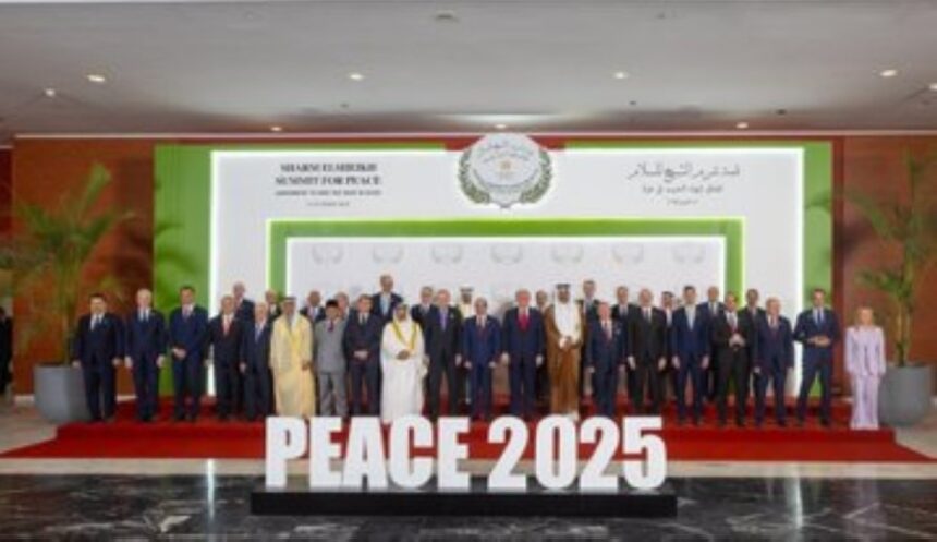 وعُقدت القمة برئاسة مشتركة بين رئيس جمهورية مصر العربية عبدالفتاح السيسي، ورئيس الولايات المتحدة الأمريكية دونالد ترمب، بمشاركة عددٍ من القادة وممثلي الدول والمنظمات الدولية، وجرى في بداية الاجتماع الترحيب بالاتفاق الذي توصلت له أطراف النزاع في قطاع غزة، والإشادة بالجهود المبذولة من قبل الرئيس الأمريكي، ومن قبل الدول الوسطاء؛ دولة قطر، وجمهورية مصر العربية، وجمهورية تركيا، والتأكيد لدعم جميع الجهود لتحقيق السلام والاستقرار في المنطقة.