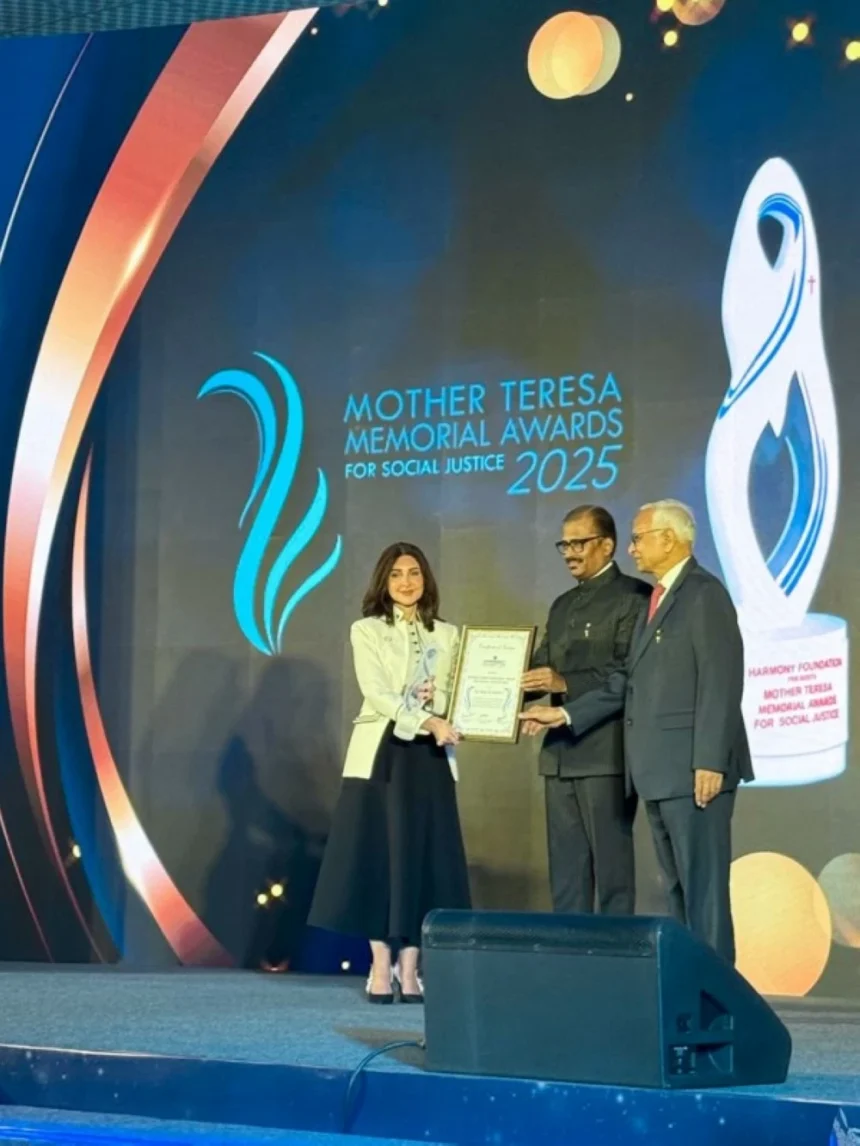 Dr. Hiba Al-Suwaidi received the Mother Teresa International Award for Peace, Equality, and Social Justice, in recognition of her humanitarian journey and her pioneering efforts in treating burn patients for free, thus becoming the first Saudi woman in the history of the award to receive this honor.