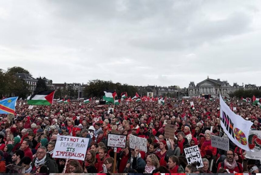 شهدت العاصمة الهولندية أمستردام، اليوم (الأحد)، مسيرة احتجاجية هائلة شارك فيها نحو 250 ألف شخص، وفقاً لتقديرات المنظمين والشرطة المحلية، مطالبين الحكومة الهولندية باتخاذ موقف أقوى ضد الحرب الإسرائيلية في غزة.