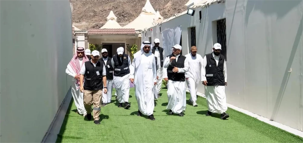 Al-Rabiah reviewed the project to mitigate the effects of thermal stress in the area surrounding Mount Arafat, which aims to enhance the quality of services provided to visitors and guests of the Sacred House, and to reduce the impact of temperature. He also looked into the project to mitigate the effects of thermal stress in the area adjacent to the Namira Mosque, which includes engineering and environmental solutions that contribute to creating a more comfortable environment for the guests of the Sacred House.