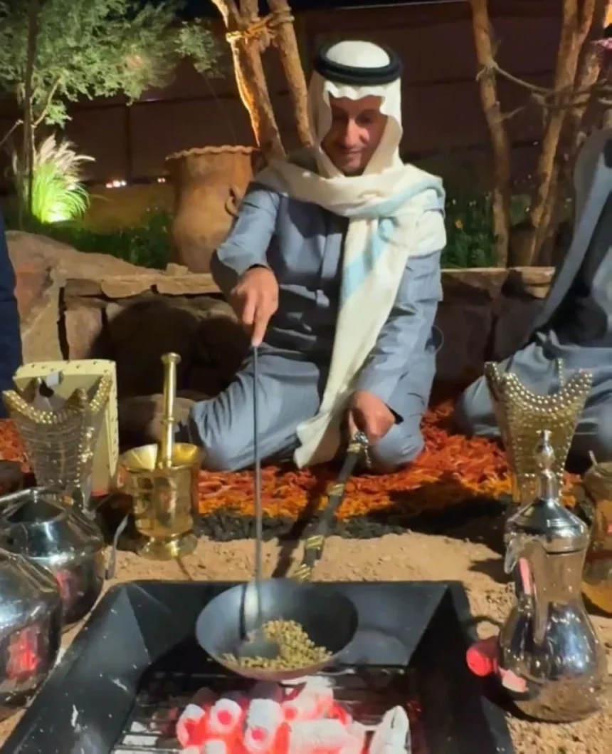 As we approach the coffee scene in Hail, we discover a snapshot that precedes and accompanies the position. Minister of Tourism Ahmed Al-Khateeb, a son of Hail, sat on the embers just as he did in his youth among its mountains, roasting the beans by hand, watching the transformation of color and aroma, then striking the dallah with a rhythm known to the gathering before the explanation. A sense of belonging is indeed evident, and a memory that transcends the image, with a ritual that preserves dignity without noise.