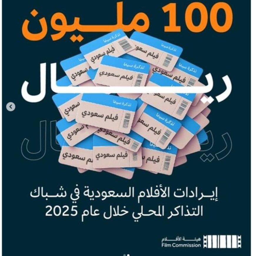 وأشارت من خلال منشورين عبر حسابها الرسمي على «إنستغرام»، إلى أن الأفلام الثمانية استحوذت على 19% من شباك التذاكر السعودي في 2025، وبلغت إيراداتها 100 مليون ريال سعودي منذ بداية العام الحالي وحتى اليوم، في إنجاز وطني يعكس ثقة الجمهور، وتطوّر الصناعة، وقوة القصة السعودية.