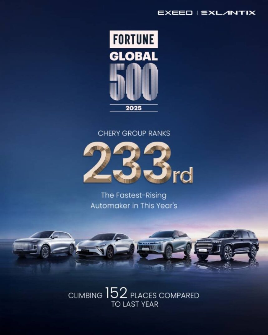 في 29 يوليو، تم الإعلان رسميًا عن قائمة فورتشن جلوبال 500 لعام 2025 على مستوى العالم. وقد قفزت مجموعة شيري القابضة إلى المركز 233 بعد أن تقدمت 152 مرتبة مقارنة…
