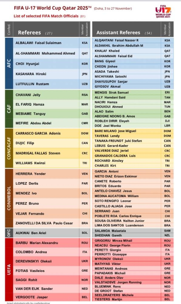 أعلنت لجنة التحكيم لدى الاتحاد الدولي لكرة القدم (فيفا) قائمة الحكام الذين سيُديرون مباريات بطولة كأس العالم تحت 17 سنة التي ستقام في قطر بين 3 و27 نوفمبر، وتعد هذه…
