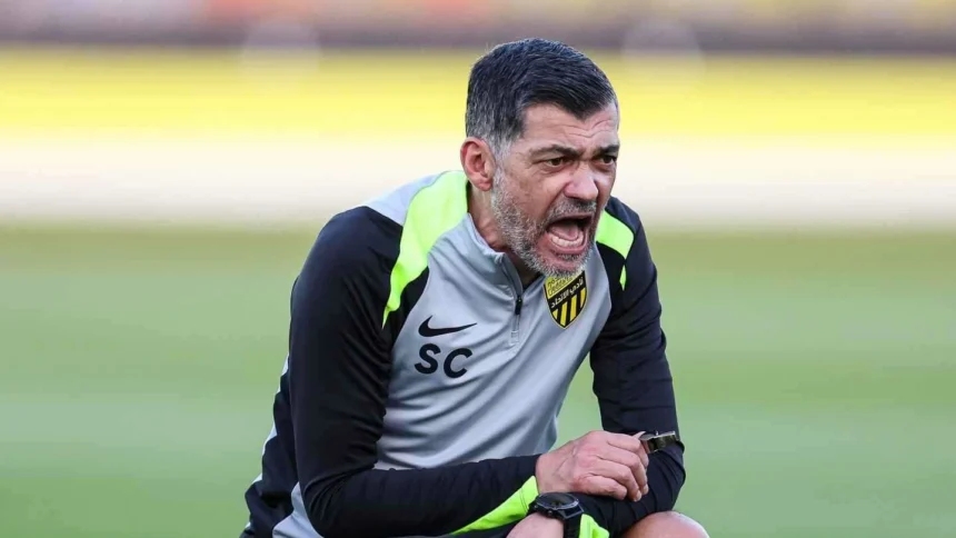 The newspaper “RECORD” defended coach Sergio Conceição by stating that the departure of stars from Al-Ittihad during the winter transfer period was the main reason behind the series of negative results, especially the two French stars “Benzema and Kante,” in addition to a series of disappointing results for the fans.